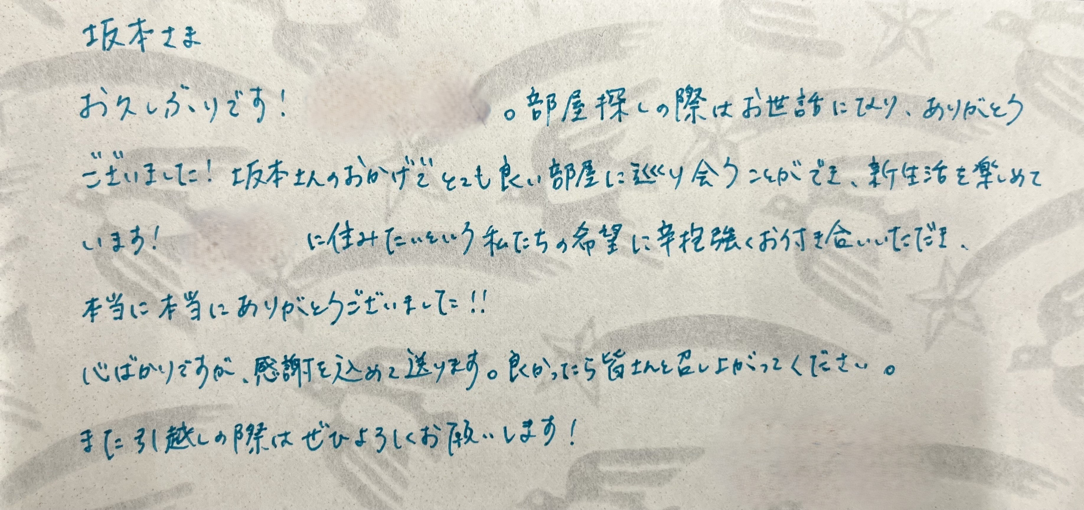 お客様よりお手紙をいただきました